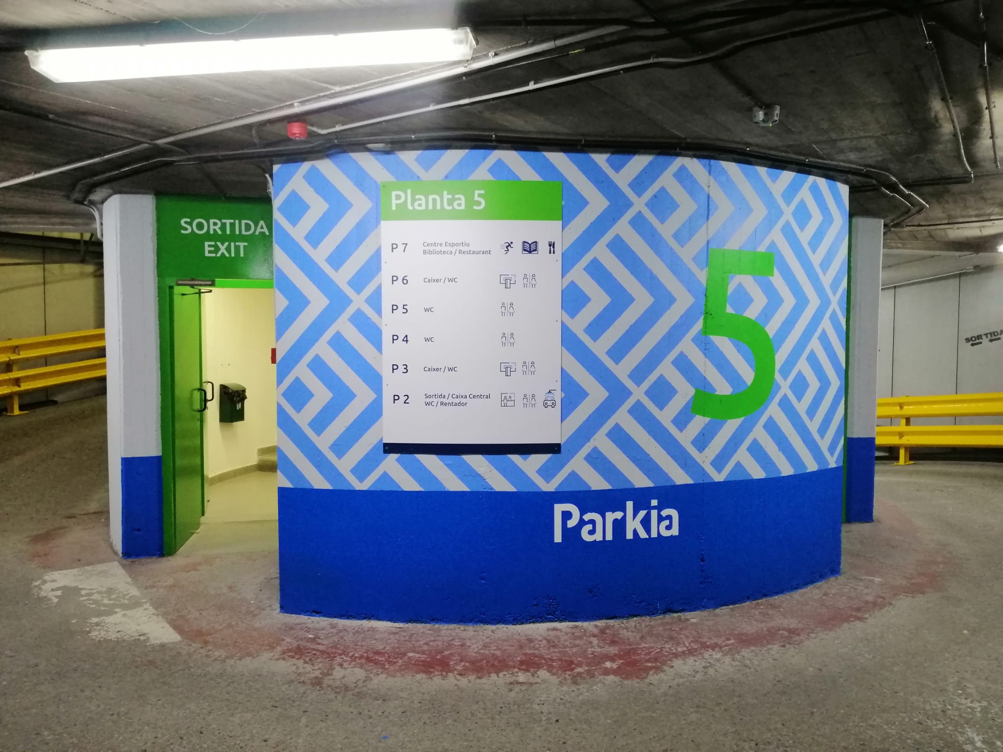 -A finales de mayo 2021 Parkia confía en nosotros para llevar a cabo la rehabilitación de pintura y adaptación a su nueva guía de estilos corporativa en uno de sus aparcamientos más grandes