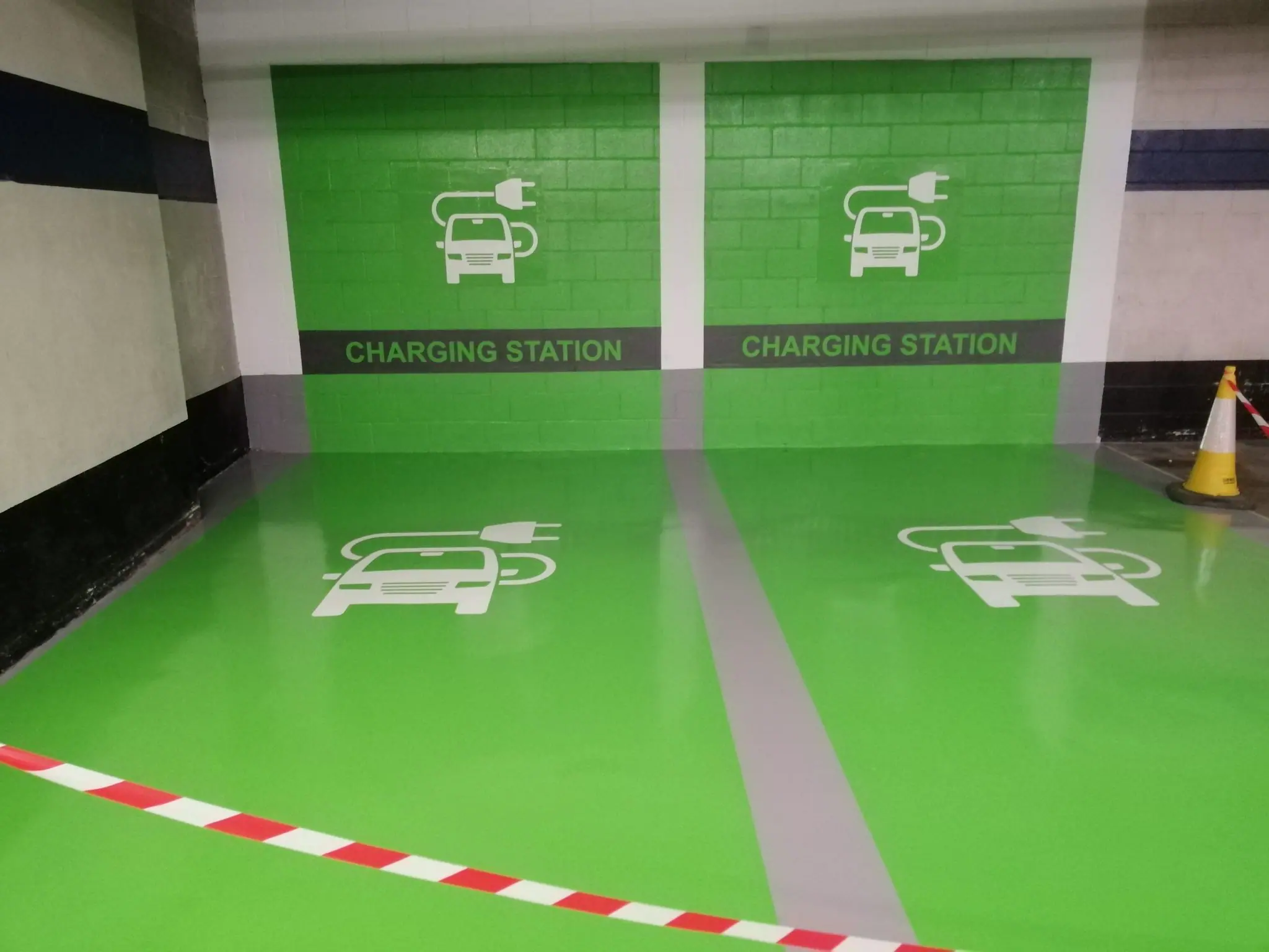 Además, aplicamos acabados antideslizantes, impermeabilizantes y de alta resistencia química, que aportan seguridad y durabilidad al entorno. Seguimos fielmente las guías de estilo, imagen corporativa o normativa del cliente, garantizando una estética cuidada y homogénea en todo el recinto —ya se trate de un garaje comunitario, un aparcamiento público o una nave industrial.
